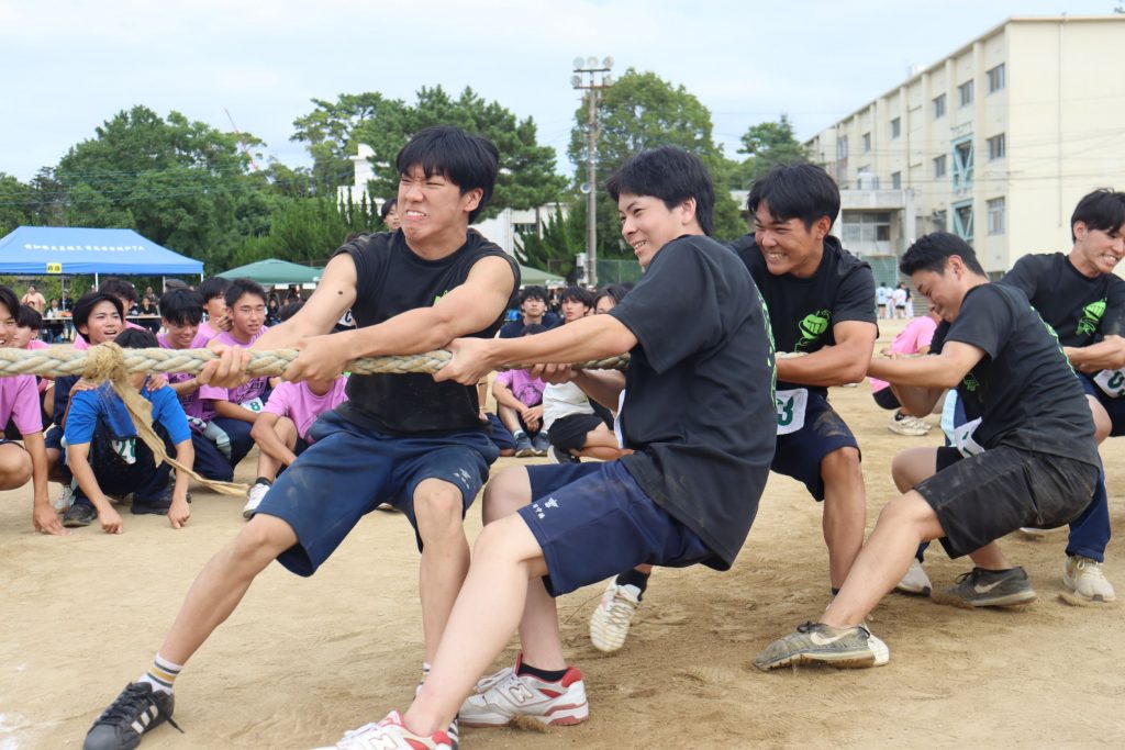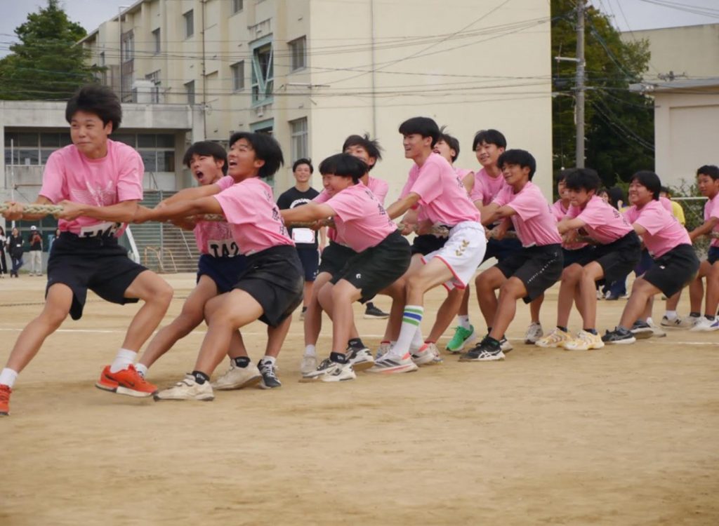 暑さの中にも秋の気配を感じ始めた9月25日(木)、「体育祭」が開催されました。 100m走や400mリレーなどの陸上種目、「とよこうリレー」(工科高校らしい障害物リレー)や「学年対抗大玉送り」(中野小学校さんからの借り物)などのレク種目、毎年大盛り上がりの「綱引き」などの団体種目が実施されました。 お揃いのクラスTシャツを着て、競技を楽しみ、活気に溢れた一日になりました。