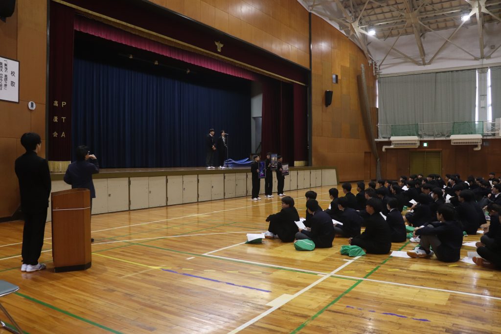 部活動紹介では、各部の上級生が1年生にむけて様々な工夫を凝らしてアピールました。新しい生徒会執行部は、今季初めての仕事として司会運営を担当し、良い経験となりました。